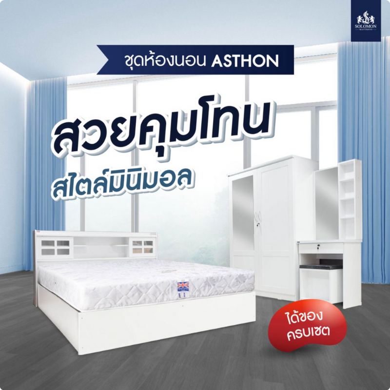Solomon mattress ชุดห้องนอน สีขาว รุ่น Ashton จบในเซ็ตเดียว ขนาด 5/6 ฟุต